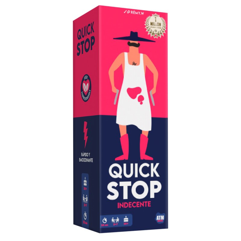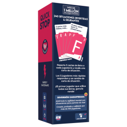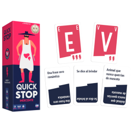 Quick Stop Indecente es un juego de cartas rápido, divertido e impredecible para mayores de 16 años. Los jugadores deben deshacerse de sus letras respondiendo palabras relacionadas con categorías más rebeldes que en el clásico Quick Stop.