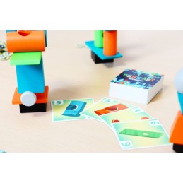Contenido: 66 Piezas de madera, 81 Cartas, 1 Cinta métrica, 95 Fichas, 1 Reglamento.