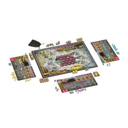 Contenido: 1 tablero de juego, 3 dados de enemigo, 1 bolsa, 36 piezas de enemigo, 1 marcador de era, 1 marcador de jugador inicial, 60 fichas de recursos, 8 losetas de almacén, 8 losetas de llaves dobles, 10 losetas iniciales, 12 losetas de objetivo, 24 herramientas, 30 engarces, 24 losetas de escombros, 28 monedas de rey, 27 reliquias, 36 losetas de tradición, 18 losetas de proyecto, 24 losetas de salones, 30 fichas de apoyo, 4 tableros de clan, 4 escudos de clan, 4 ayudas de juego, 32 enanos, 60 vagonetas, 56 constructores, 40 marcadores, 1 tablero de concilio de sabios, 3 losetas de dificultad, 1 dado del concilio de sabios, 12 cartas de herramientas del concilio de sabios.