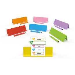 Contenido: 110 cartas, 7 atriles, 7 rotuladores borrables y 1 reglamento.