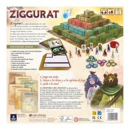 Contenido inicial: 1 tablero de juego con 6 niveles distintos que conforman el zigurat, 12 héroes, 4 cartas de héroe, 12 fichas de espíritu de fuego, 38 cartas iniciales, 1 ficha de jugador activo, 6 sobres de capítulo, 1 libro de reglas y ¡muchas más sorpresas ocultas!
