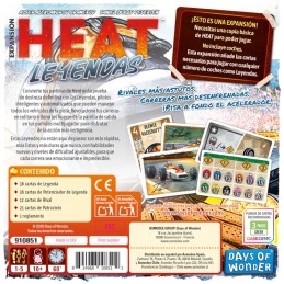 ¡ESTO ES UNA EXPANSIÓN! Necesitas una copia básica de Heat para poder jugar. No incluye coches. Esta expansión añade las cartas necesarias para jugar con cualquier número de coches como Leyendas.