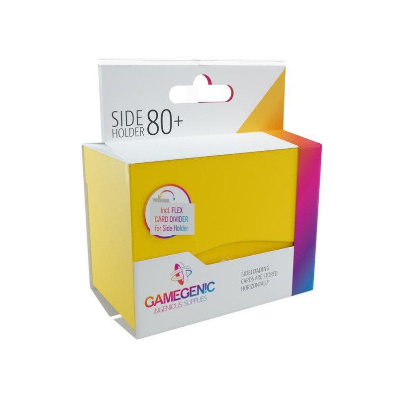 Este producto ofrece a los jugadores una solución inteligente y rápida para almacenar y organizar sus mazos de cartas. El Side Holder 80+ es una caja para mazos clásica que garantiza la protección de hasta 80 cartas con doble funda. Su tapa con autocierre puede abrirse hasta 180° gracias a la innovadora tecnología COBRA NECK de la parte posterior. Una práctica tira en blanco permite etiquetarlo individualmente. También incluye un separador de cartas flexible FLEX.