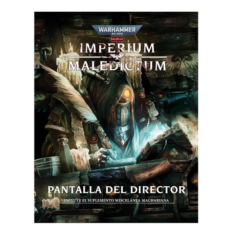 La Pantalla del Director de juego de Imperium Maledictum es un complemento indispensable para el conjunto de herramientas de todo DJ. La pantalla del DJ contiene una gran cantidad de información, reglas de consulta habitual y se acompaña de un folleto adicional de 32 páginas repleto de herramientas para generar elementos de la ambientación y diversas aventuras cortas aptas para cualquier grupo.