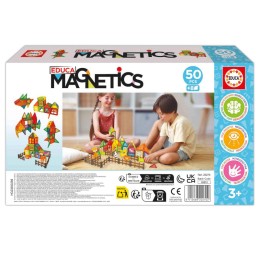 50 piezas de bloques magnéticos 3D que permiten crear figuras geométricas a los ninos a partir de los 3 años. Incluye 4 animales y 8 tarjetas de decoración. Mientras juegan, aprenden de forma natural los principios de los Imanes y la Fuerza Magnética.
