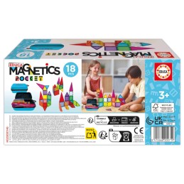 Estuche con 18 piezas de bloques magnéticos 3D que permiten crear figuras geométricas a los niños a partir de los 3 años. Mientras juegan, aprenden de forma natural los principios de los Imanes y la Fuerza Magnética.